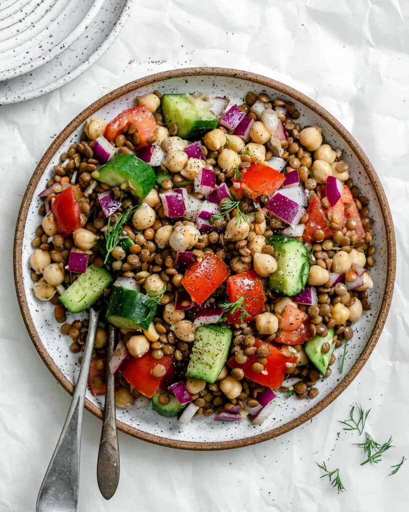 - Lentils: The base — green or brown lentils hold their shape best for salads.
